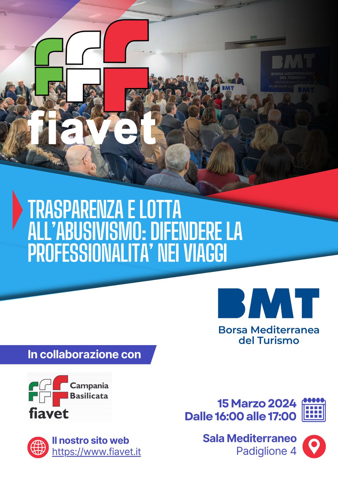 BMT 15 MARZO ORE 16:00 SALA MEDITERRANEO – marzo 8, 2024 Spread the loveTRASPARENZA E LOTTA ALL’ABUSIVISMO: DIFENDERE LA PROFESSIONALITA’NEI VIAGGI! BMT 15 MARZO ORE 16:00 SALA MEDITERRANEO