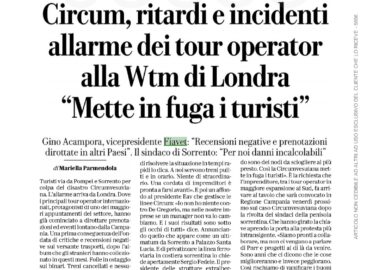 Circum, allarme dei tour operator “Prenotazioni dirottate, turisti in fuga” Acampora, vicepresidente Fiavet Campania Basilicata alla Wtm di Londra: “Recensioni […]