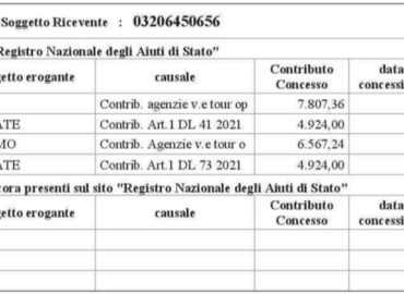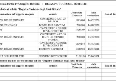 Pubblicazione Aiuti di Stato Relaxing Tours