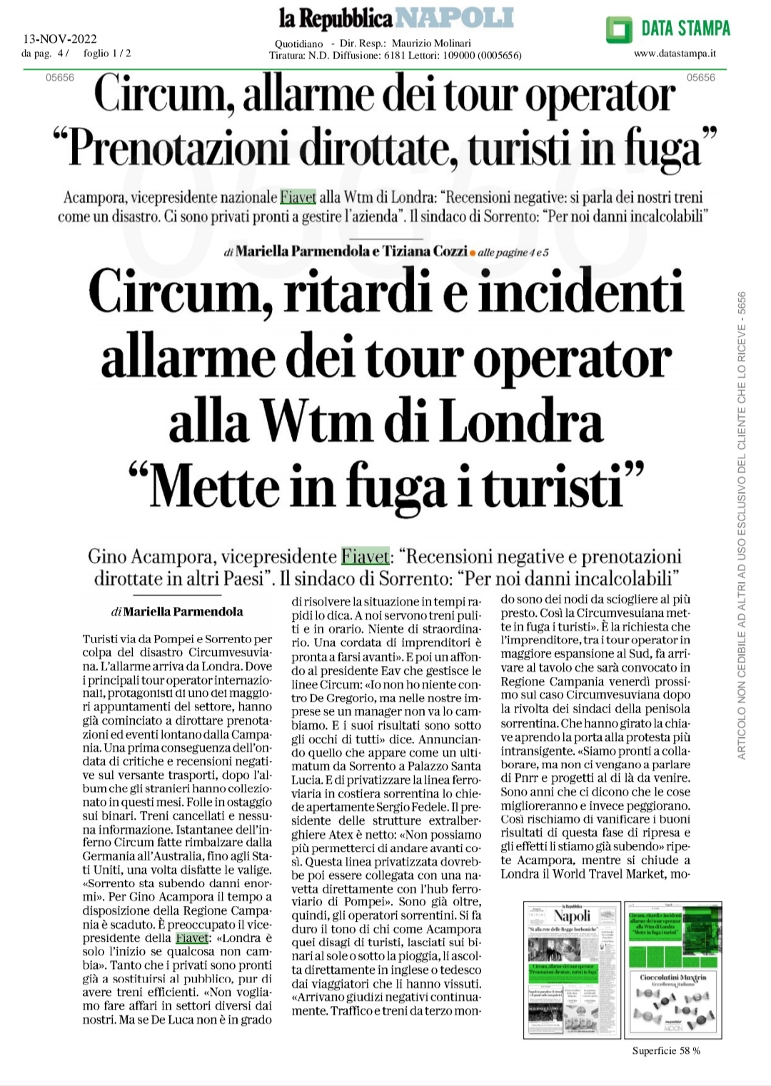 Acampora, vicepresidente Fiavet Campania Basilicata alla Wtm di Londra: “Recensioni negative: si parla dei nostri treni come un disastro. Ci sono privati pronti a gestire l’azienda”