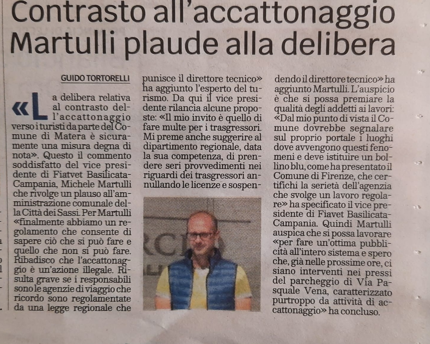 Contrasto all’accattonaggio – Martulli, vice presidente di Fiavet Campania Basilicata, plaude alla delibera.