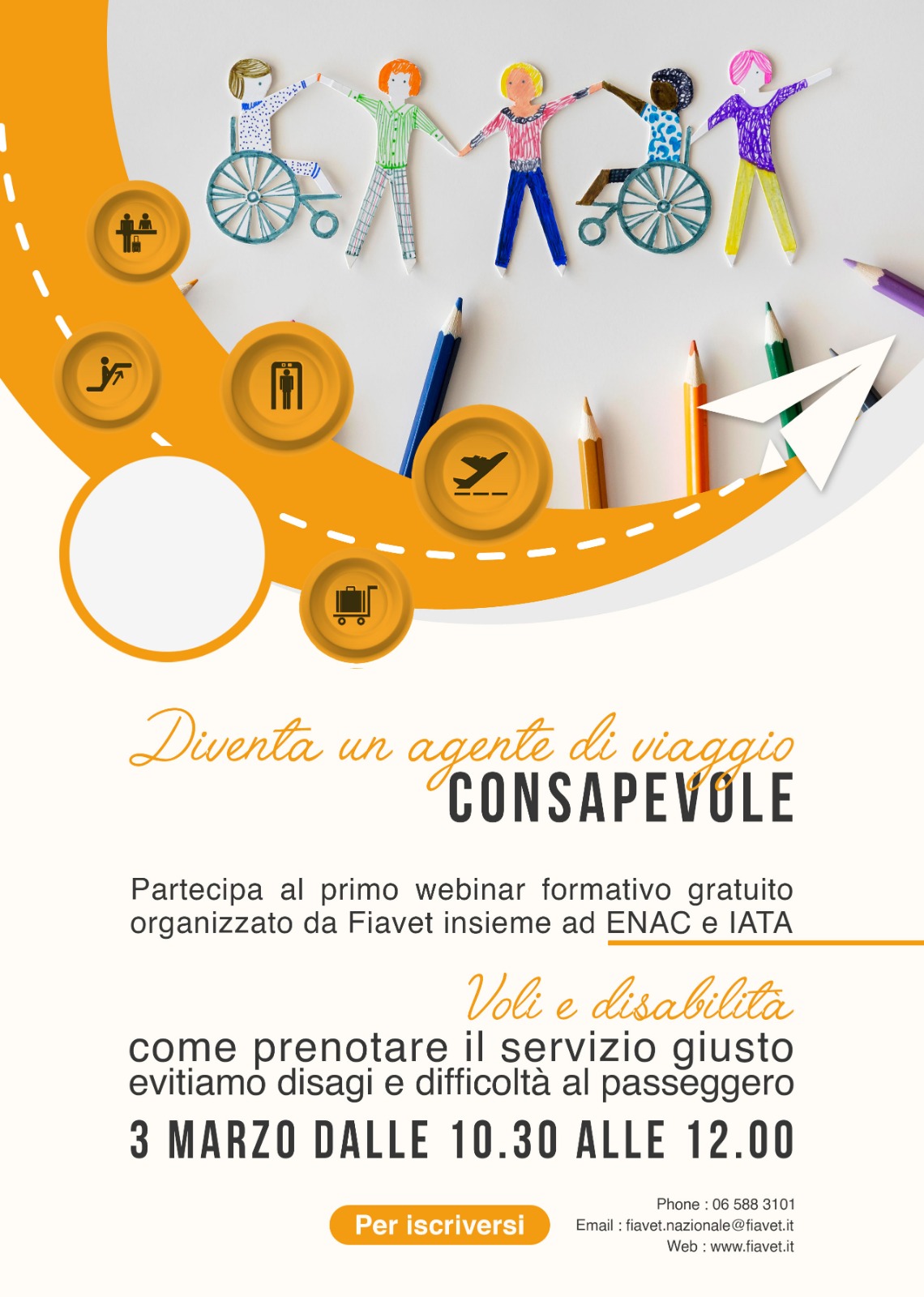 Diventa un agente di viaggio consapevole febbraio 21, 2023 Spread the loveCogli l’opportunità lavorativa. Diventa un agente di viaggio e capace di gestire le esigenze di un passeggero con disabilità! Ecco il link per la registrazione: https://tinyurl.com/bdd9vjr4
