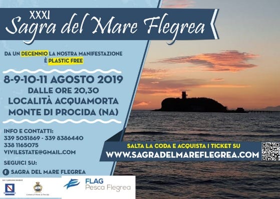 “Sagra del Mare Flegrea” organizzata dalla Associazione “Vivi L’Estate” vi aspetta per trascorrere delle serate di festa cullati tra mare, gastronomia e divertimento. Una schiera di 30 gazebo tra cui; stand delle fritture: 2 stand dove si possono assaggiare delle abbondanti porzioni di frittelle d’alghe e una frittura di pesce azzurro freschissimo, stand delle cozze e quello delle bruschette, stand ristoranti, dolce, bibite, degustazioni vini. Nelle stesse serate, spettacoli musicali, danze folcloristiche (un vero Festival delle Tammorre e non solo).